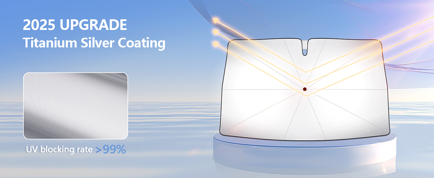 [حماية فائقة من الأشعة فوق البنفسجية] واقي من الشمس فوق البنفسجية للزجاج الأمامي مصنوع من مادة عاكسة عالية الكثافة، يحجب 99% من الأشعة فوق البنفسجية الضارة. يمنع تشققات لوحة القيادة وبهتان الجلد ويحافظ على برودة مقصورتك حتى 30 درجة مئوية.