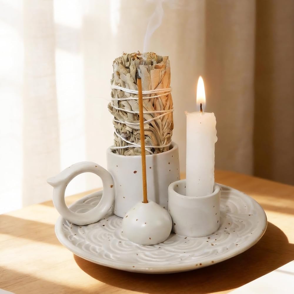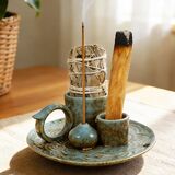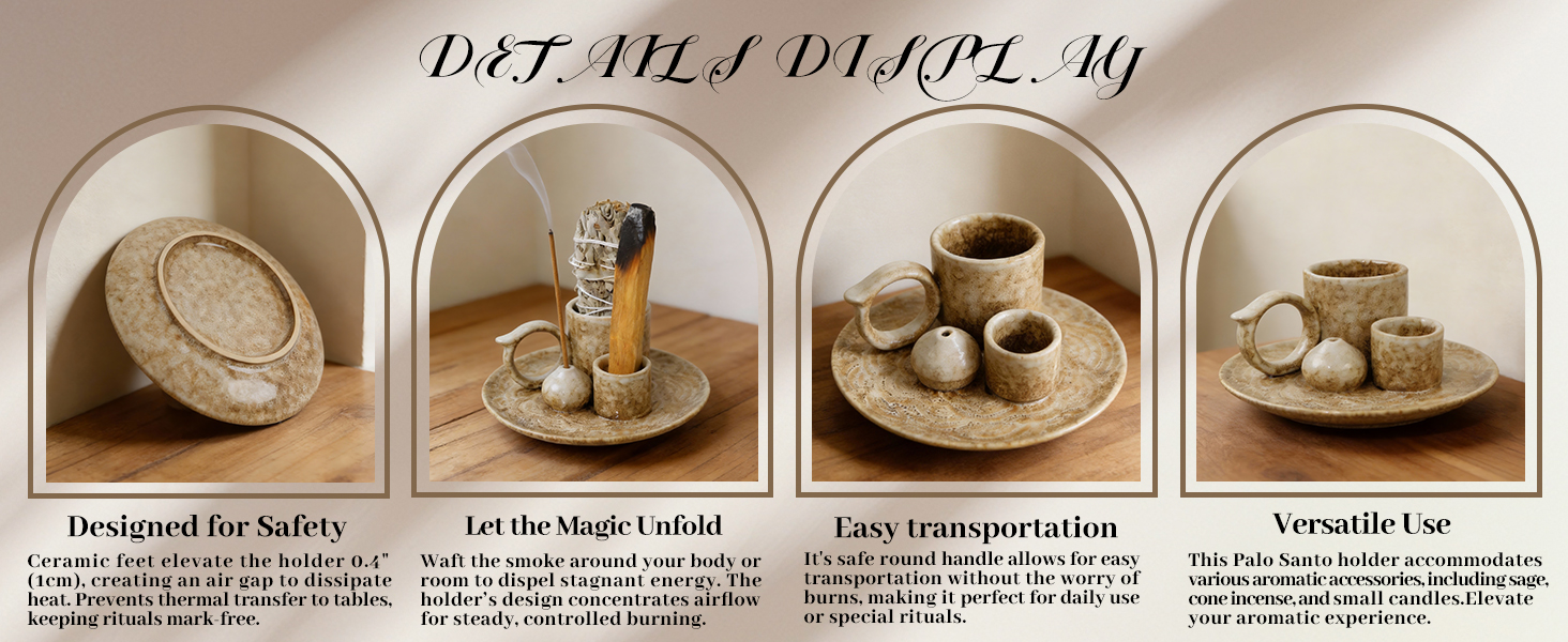 • 🔯 **محلول بخور 4 في 1 متعدد الاستخدامات**: ارفع ممارساتك الروحية من خلال تصميمنا المعياري الكل في واحد. تعمل هذه القطعة متعددة الوظائف كحامل بخور (للعصي والأقماع والراتنجات)، وموقد بالو سانتو، وموقد مريمية، وحامل شموع صغير، مما يجعلها إكسسوارًا أساسيًا لأي طقوس علاج عطري.