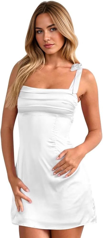 تصميم رقبة مربعة وحزام سباغيتي: يوفر خط الرقبة المربع مظهرًا عصريًا جذابًا يسلط الضوء على الكتفين وعظام الترقوة، بينما توفر أشرطة السباغيتي لمسة رقيقة. يوازن هذا التصميم بين الأناقة والأجواء الشبابية، مما يجعله مثاليًا لحفلات العودة إلى الوطن أو حفلات الكوكتيل.