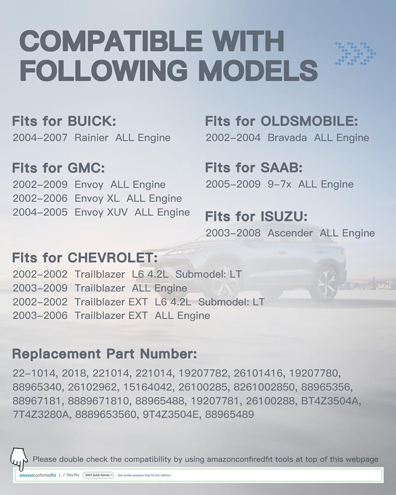 Compatible with Chevy, GMC, Buick, Saab, Isuzu, and Oldsmobile vehicles, including: