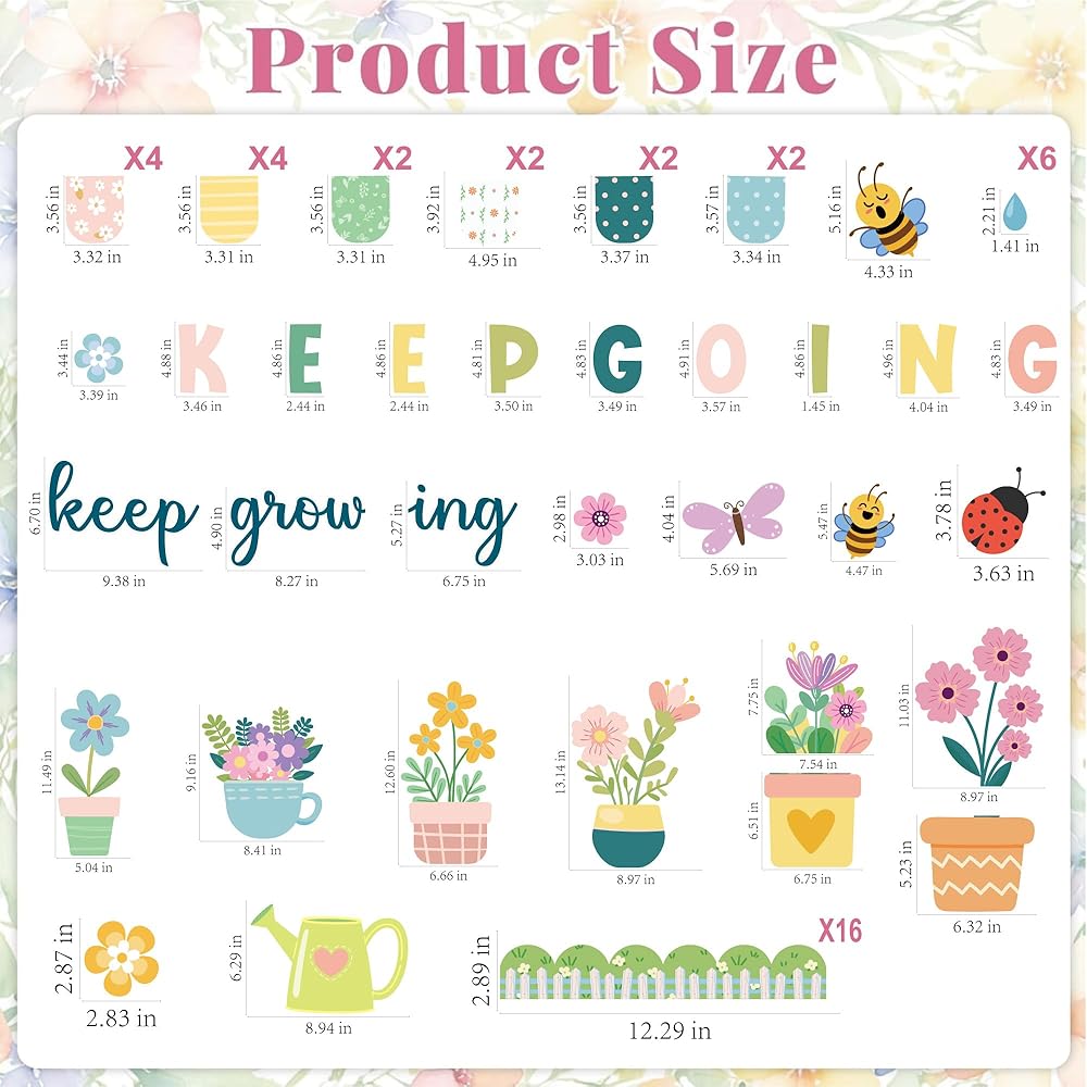 【Package includes】This spring bulletin board decorations includes 56 cutout and 100 glue points. The ample quantities enable you to exercise your creativity and transform your space into a lively spring.