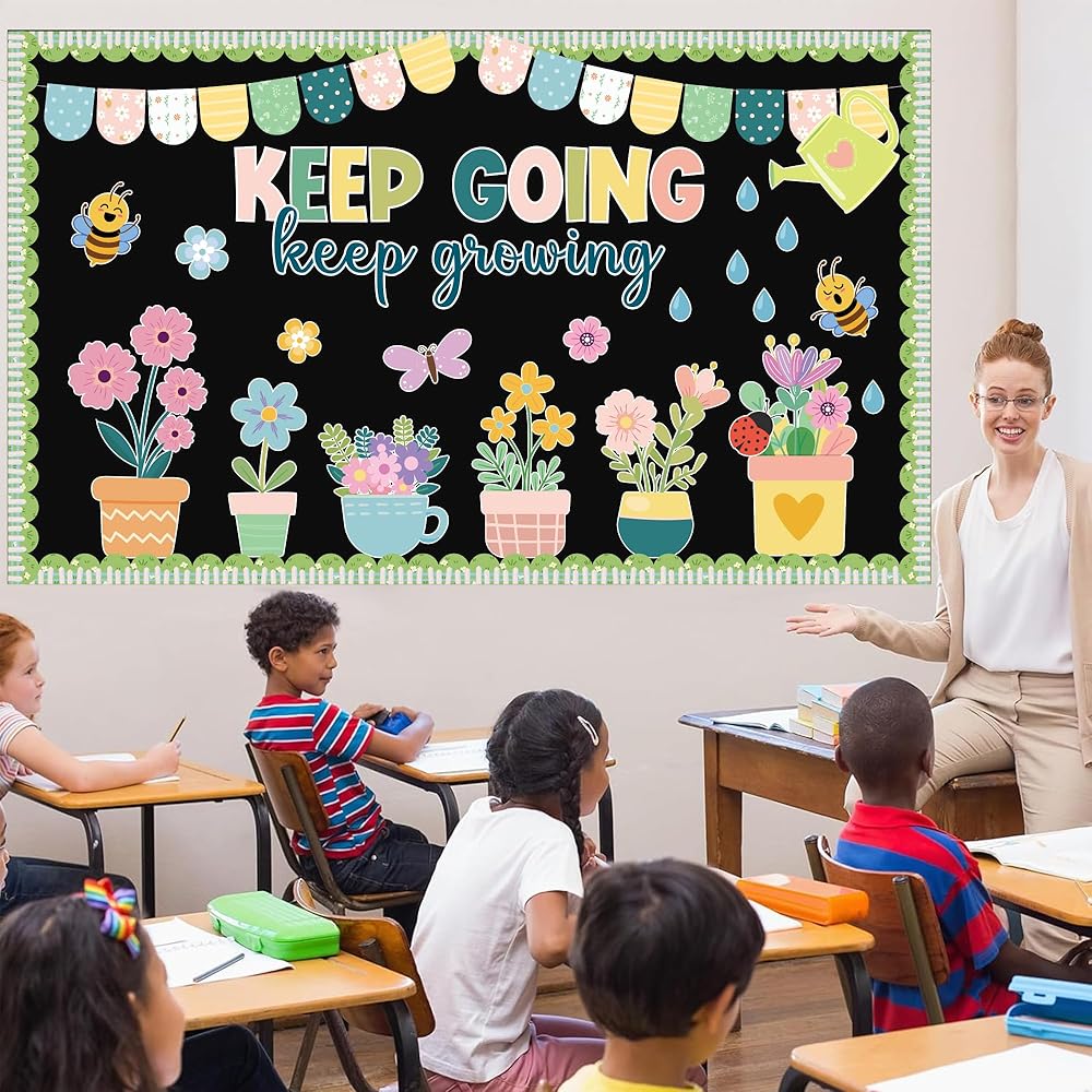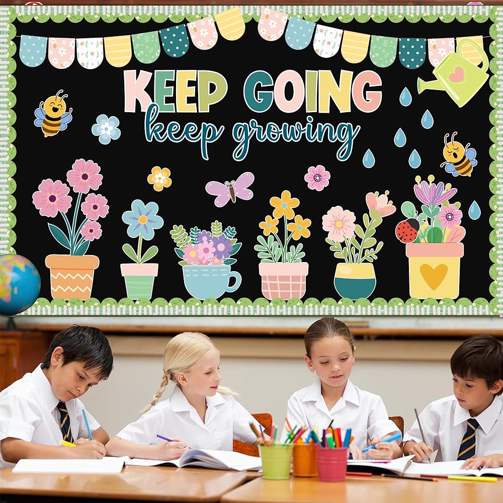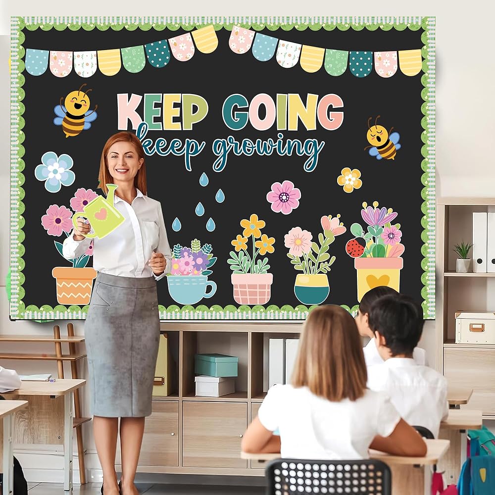Spring Bulletin Board Decorations Set Keep Going Keep Growing Bulletin Board Grow Flower Cutouts Positive Paper Cutouts for Teacher Spring Classroom Supplies
