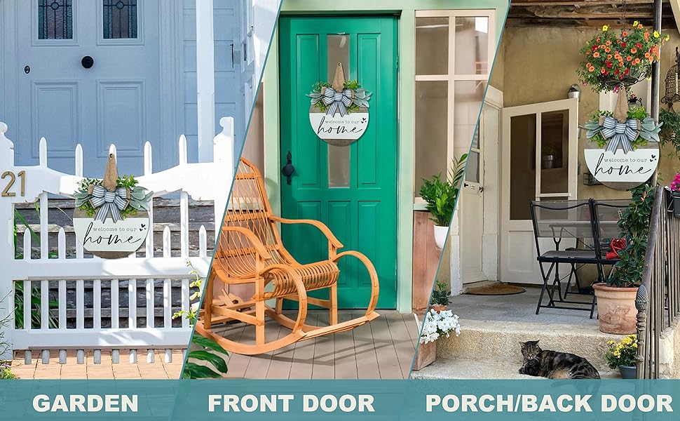 【مثالي لأي منزل】ديكور الشرفة الأمامية الخاص بنا هو أجمل باب منزلك الأمامي. إنه مثالي للتعليق على ديكور الباب الأمامي، أو الباب الخلفي، أو غرفة المعيشة، أو غرفة النوم، أو المدخل، أو جدار رف أو الاستناد على الرف أو أي مكان في منزلك، حتى يمكن استخدامه في المقاهي والمطاعم والمكاتب والشركات، ويتم تطبيقه لتزيين المنزل وتحية الضيوف.