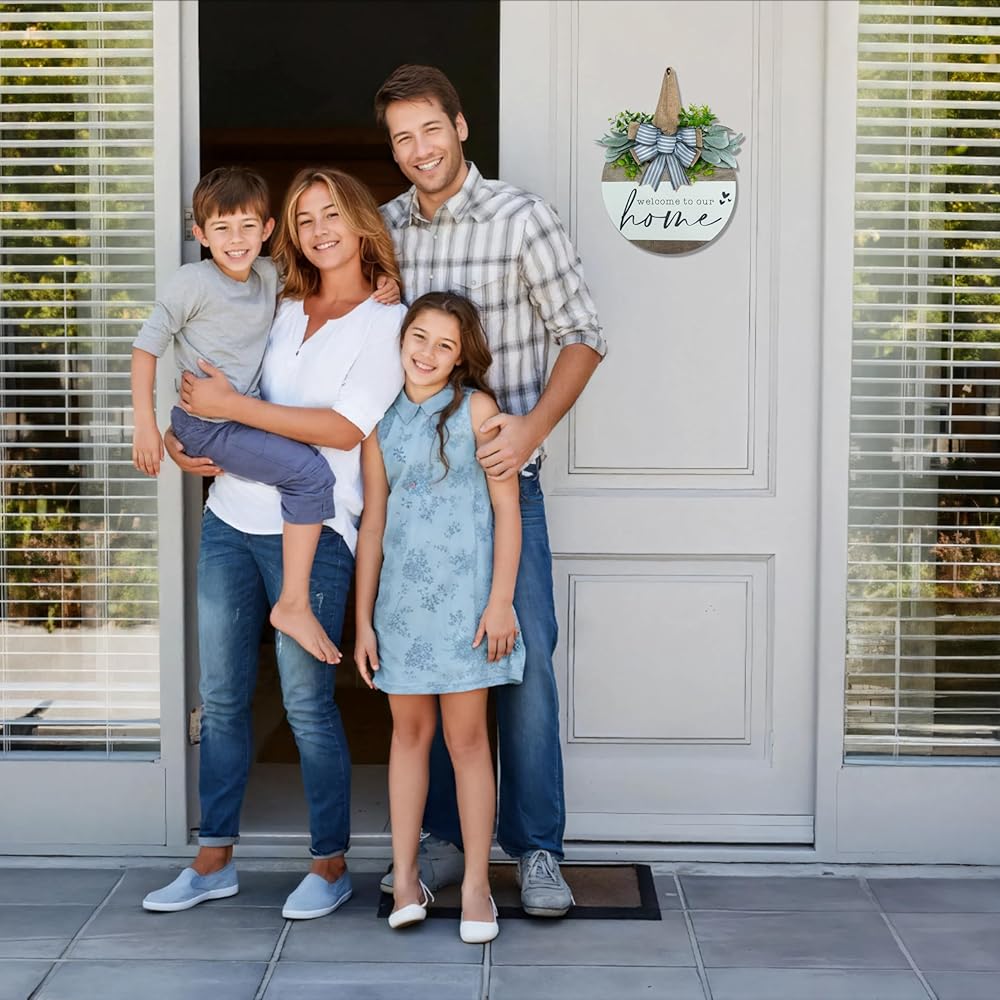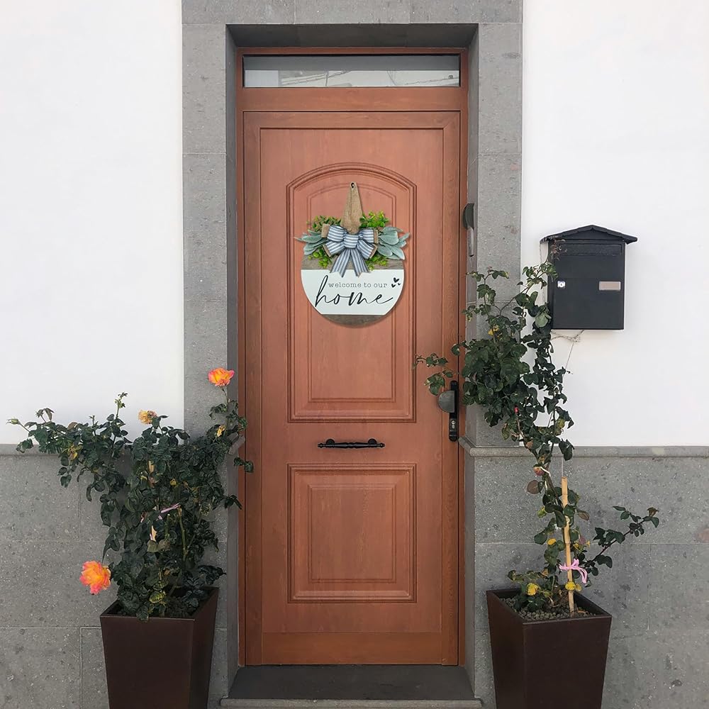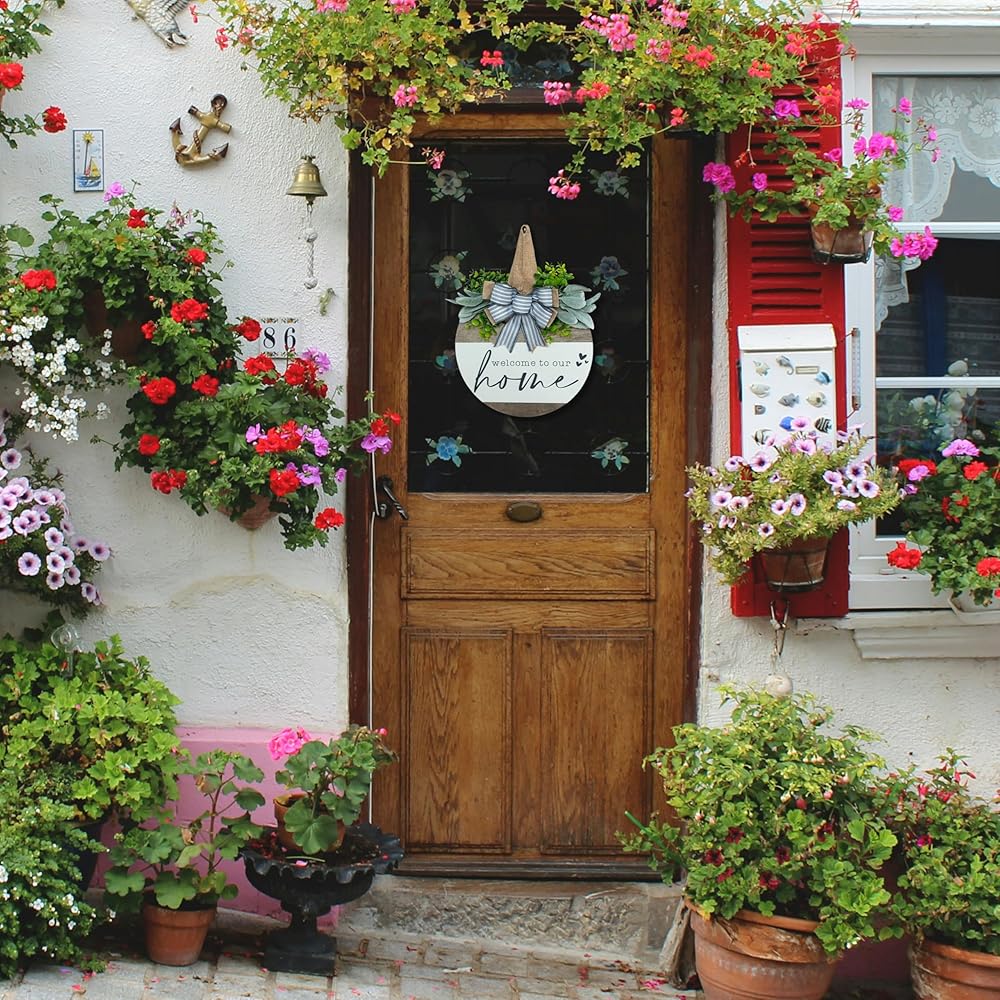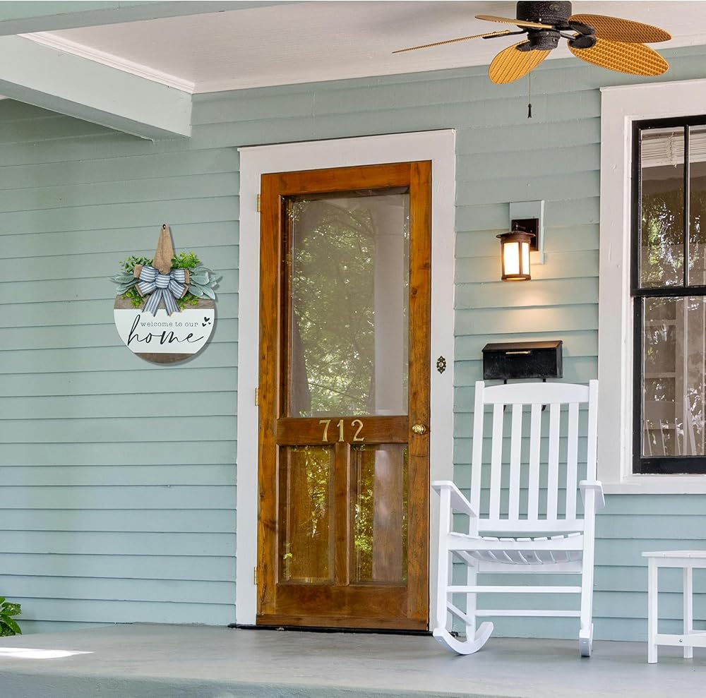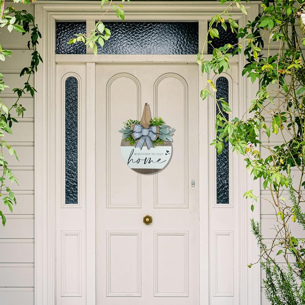 علامة ترحيب لإكليل الباب الأمامي، ديكور مزرعة ريفي حديث، أكاليل لديكور الشرفة الأمامية في الهواء الطلق، ديكورات منزلية ترحيبية، هدايا الترحيب بالمنزل الجديد لربيع وصيف الخريف وعطلات جميع الفصول