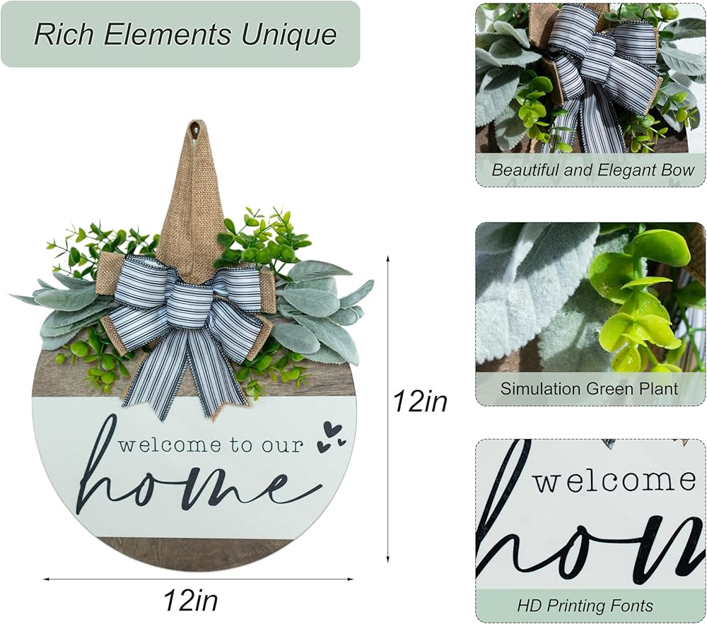 【مواد مختارة】 أكاليل الترحيب للباب الأمامي مصنوعة من الخشب الصلب السميك، طباعة ثلاثية الأبعاد، ليست عرضة للبهتان. التطابق المثالي بين المساحات الخضراء والأقواس النابضة بالحياة يجعل ديكور الباب الأمامي الترحيبي الخاص بنا هو أفضل طريقة لإضفاء لمسة جمالية على باب منزلك الأمامي.