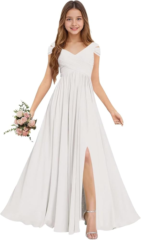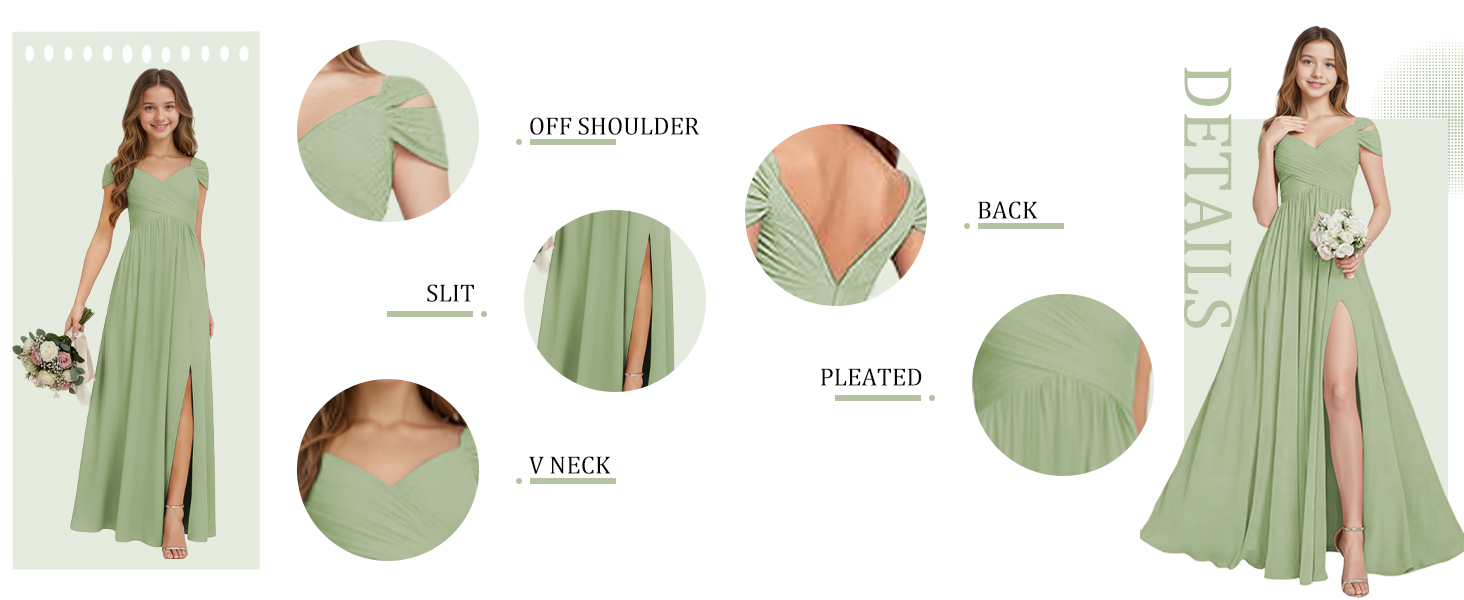 القماش: فستان وصيفة العروس الصغيرة بدون أكتاف مصنوع من الشيفون وفستان فتاة الزهرة برقبة على شكل حرف V لحفلات الزفاف يتميز ببطانة ناعمة، وخفيف الوزن، ومريح، وصديق للبشرة. فستان وصيفة العروس جونيور طويل من الشيفون بدون أكتاف، فستان فتاة الزهور مصنوع من بطانة داخلية ناعمة وطبقة خارجية لامعة من الشيفون خفيف الوزن، ومريح، وخفيف الوزن، ومسامي، وسهل الارتداء. فستان وصيفة العروس الصغير بدون أكتاف، فستان شيفون لفتاة الزهور مريح للغاية وسهل الحركة في.