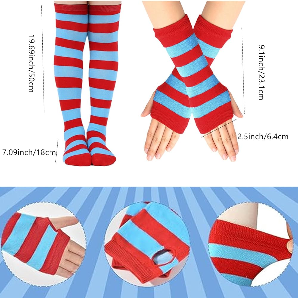 إكسسوارات الموضة: القفازات المخططة باللونين الأحمر والأزرق والجوارب العالية حتى الركبة مصنوعة من البوليستر، ناعمة ومريحة، مع مرونة. مجموعة إكسسوارات تول توتو لمعظم الأطفال