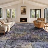 سجاد منطقة مجردة من Kokia مقاس 6 × 9 بوهو قابل للغسل سجادة أرضية داخلية عتيقة متعددة الألوان كومة منخفضة غير قابلة للانزلاق وغير قابلة للتساقط سجادة زرقاء لغرفة النوم وغرفة المعيشة وغرفة الطعام، أوسلو البط البري in Kuwait