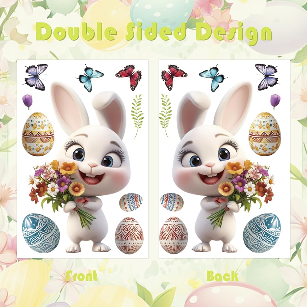 Lovely Design - There are various easter static stickers, including Cute 3D Cartoon Bunny and Easter Eggs and so on, with double-sided printed, these cute stickers will help you to create a nice decoration effect.