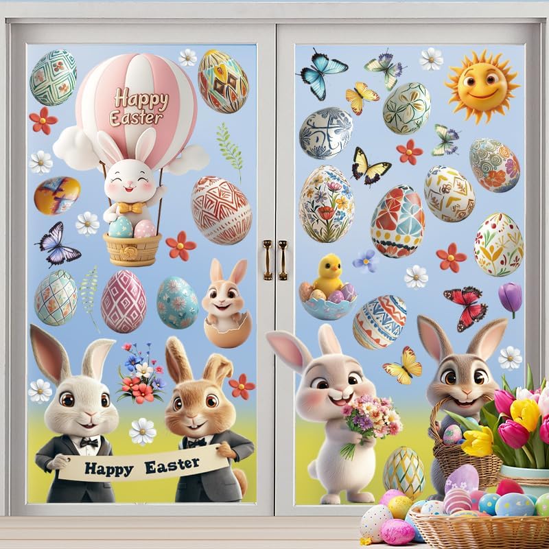 Easy to Stick - These Easter static stickers can be stick to glass window, glass door, refrigerator door or other smooth surface stably, easy to stick and remove, without leaving any trace.