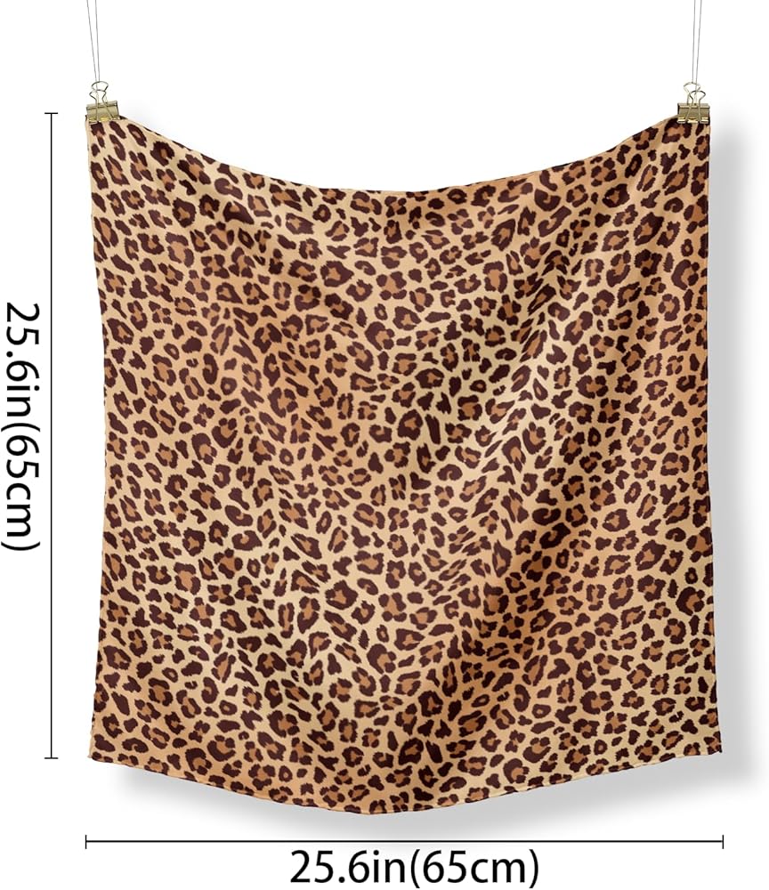 • Premium Quality Material: Our cheetah print silk scarfs are made from high-quality materials, ensuring a luxurious and elegant feel. Experience the ultimate comfort and softness on your skin.Size: 25.6 inches x 25.6 inches (65 cm x 65 cm).