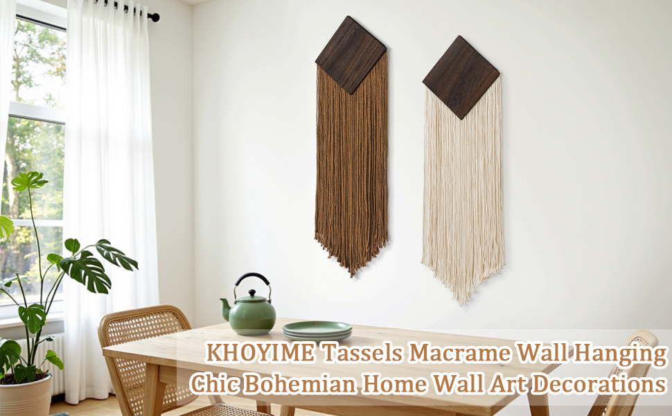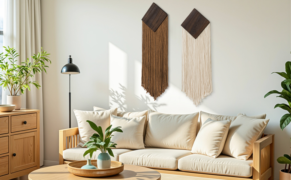 【خامة ممتازة】ديكور التعليق على الحائط باللون البيج البني مصنوع من حبل القطن الخالص والخشب الصلب عالي الجودة. شرابات الغزل المتينة مقاومة للكسر أو التشوه، والجزء العلوي الخشبي الصلب على شكل معين يعزز الثبات، مما يحافظ على ديكور جدار المنزل البوهيمي ساحرًا على المدى الطويل. ملحوظة: قد يتم طي الشرابات أثناء النقل، ولكن فقط قم بتنعيمها بلطف وعلقها لبضعة أيام للسماح لها بالانتشار بشكل طبيعي، وستحصل على نسيج حائط بوهو أكثر جمالاً.