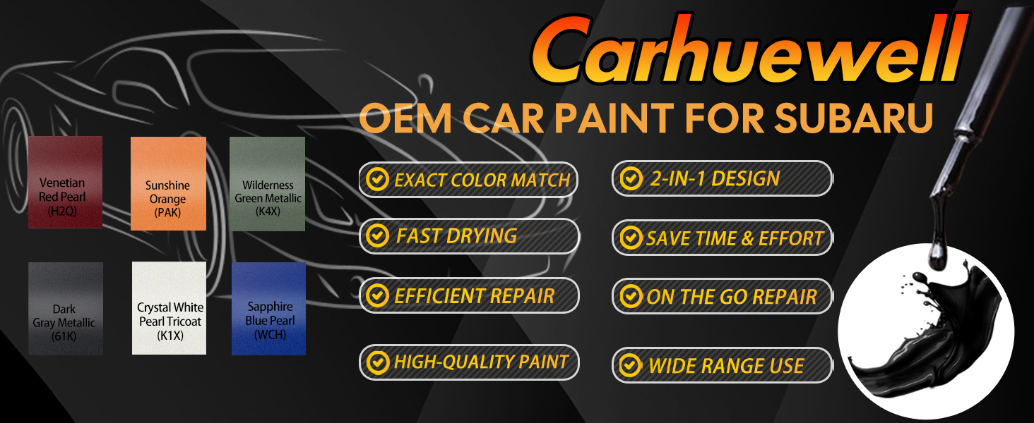 • مطابقة دقيقة للألوان: تم تصميمها بخبرة لموديلات سيارات سوبارو. يخضع طلاء اللمسات هذا لاختبارات صارمة ليتوافق بشكل مثالي مع تشطيب المصنع الخاص بك. قلل من اختلافات الألوان وحقق إصلاحات سلسة وغير مرئية للخدوش والرقائق وتقشير الطلاء. يرجى الاختبار على الورق أولاً للتحقق من اللون، وسنتعامل مع أي مشكلات إن أمكن