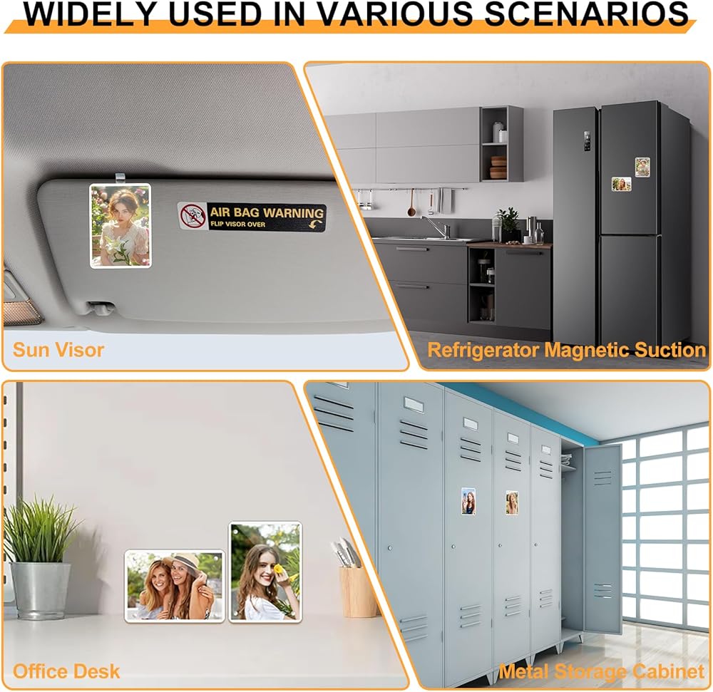 【2Pcs Magnetic Car Sun Visor Picture Holder Set】This 2-pack car picture holder includes two magnetic car sunshade photo frames, ideal as a wallet-size car visor picture holder for family or pet photos. The 2pcs car picture holder for sun visors fits most car models, including those with thick visors, meeting daily use and replacement needs.