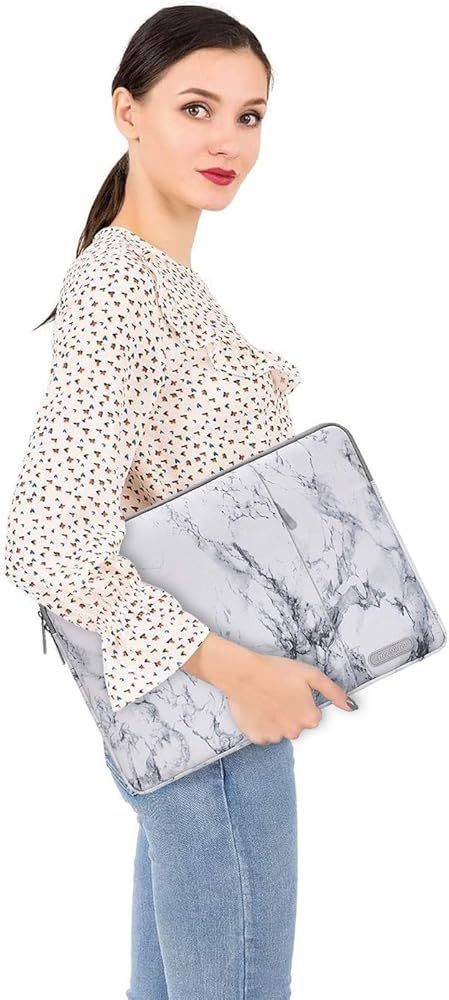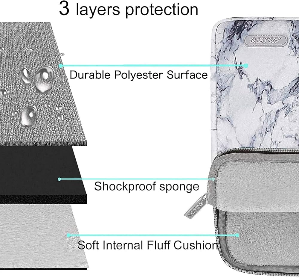 مصنوع من مادة رخامية من البوليستر، وسحاب علوي مفتوح ينزلق بسلاسة ويسمح بالوصول السهل إلى جهازك. نحيف وخفيف الوزن، ولا يزيد حجم جهازك ويمكن وضعه بسهولة في حقيبتك أو حقيبة الظهر أو أي حقيبة أخرى.
