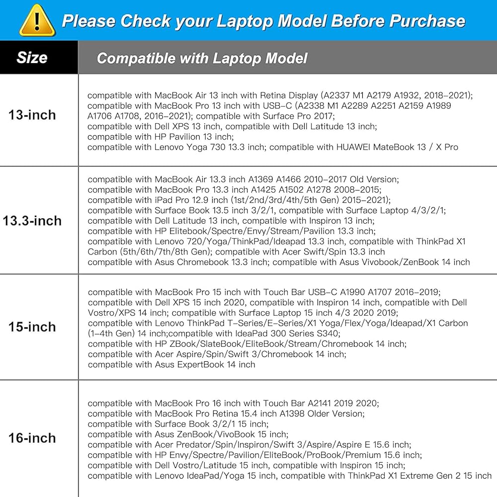 متوافق مع ماك بوك اير 13 13.3 13.6 M4 A3240 M3 A3113 M2 A2681 M1 A2337 A2179 A1932 A1369 A1466 2010-2025، متوافق مع ماك بوك برو 14 2025-2021 M5 M4 M3 M2 M1 A3434 A3112 A3185 A3401 A2918 A2992 A2779 A2442، متوافق مع MacBook Pro 13 2008-2025 M2 A2338 M1 A2251 A2289 A2159 A1989 A1708 A1706 A1425 A1502 A1278؛ متوافق مع Surface Laptop 13.8/Surface Book 3/2/1 13.5/Surface Laptop 4/3/2/1 13.5؛ متوافق مع Dell XPS/Latitude 13؛ متوافق مع HP Elitebook/Spectre/Envy/Stream 13.