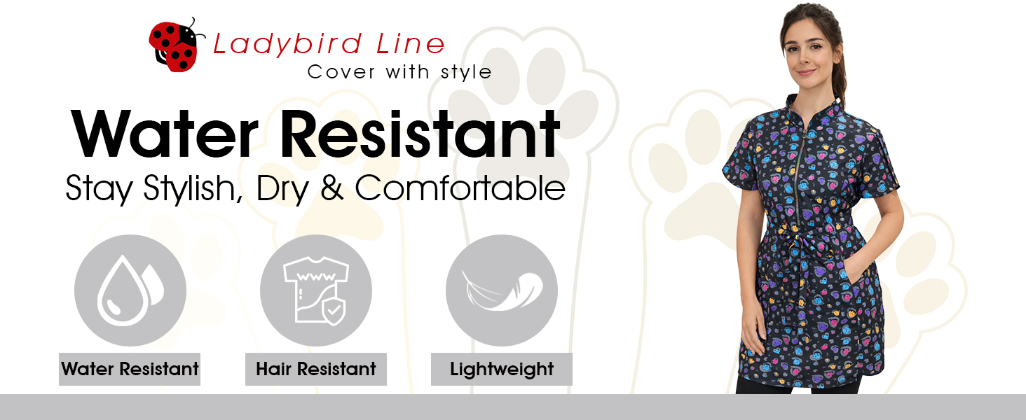 • تصميم عملي - كما يعلم جميع مصففي الشعر المحترفين ومربي الحيوانات الأليفة، أهمية المظهر الاحترافي دائمًا. تصمم شركة Ladybird Line ملابس عملية وعصرية تسمح لك بالظهور بمظهر رائع عندما تفعل ما تحب. صُنعت هذه السترة الأنيقة خفيفة الوزن بنصف سحاب أمامي بألوان قوس قزح لتبقيك نظيفًا ومرتاحًا طوال اليوم، كما يوفر التصميم ذو الطول الأطول المزيد من التغطية والحماية.