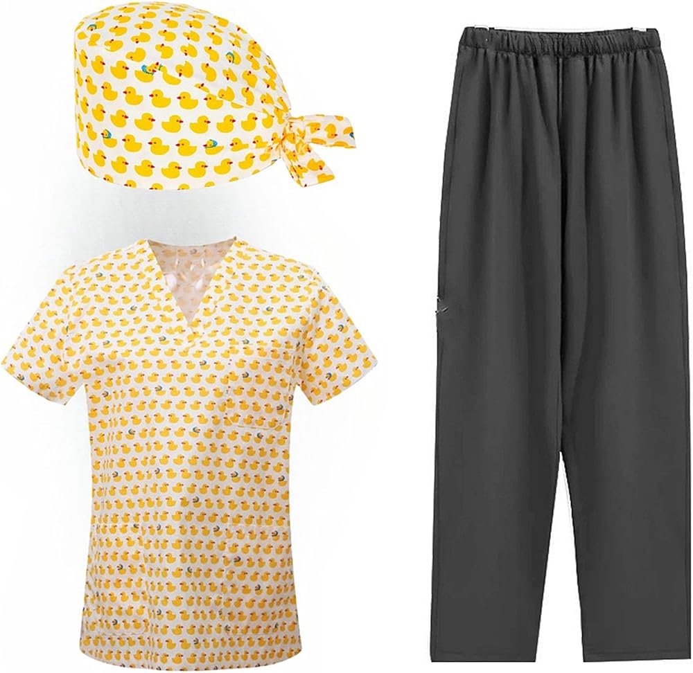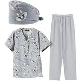 مستلزمات طبية مطبوعة للنساء، ملابس عمل طبية احترافية، بلوزة برقبة على شكل حرف V وسراويل فرك مع 9 جيوب in Kuwait