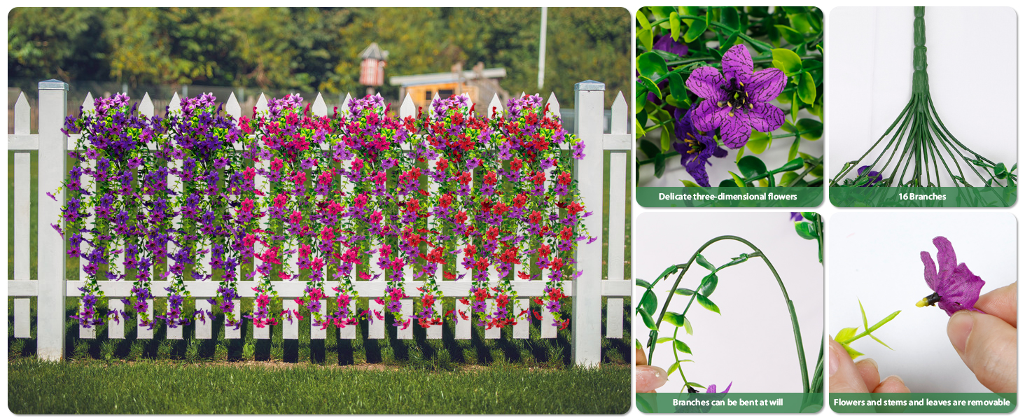 مظهر حقيقي مقاوم للأشعة فوق البنفسجية - هذه الزهور الاصطناعية النابضة بالحياة المعلقة لا تبهت أو تبهت أبدًا، مما يوفر لك جمالًا أبديًا! لا داعي للقلق بشأن الرياح أو المطر، وستظل ذكرى دائمة ليومك الخاص. يمكن ترتيب الزهرة الاصطناعية المعلقة بسهولة في السلال أو الجدران أو الأسقف، مما يسمح لك بإنشاء عروض مذهلة بسهولة