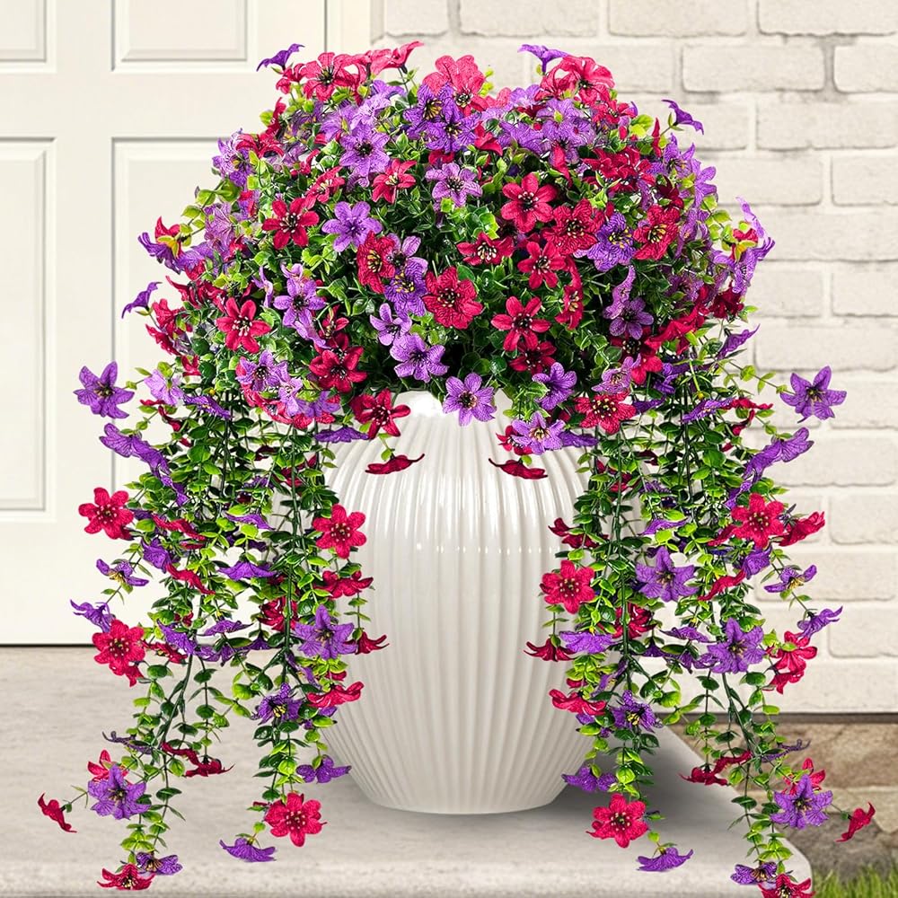 تزيين جميع المناسبات - يعد ترتيب الزهور الاصطناعية المزيفة إضافة عصرية لأي مساحة، مثالي لديكور المنزل، والعطلات، وحفلات الزفاف، والحفلات، وديكور المكاتب، والباحات، والشرفات، والحدائق، مما يعزز البيئات الداخلية والخارجية. قم بتزيين منزلك الدافئ بسرعة بالزهور المعلقة النابضة بالحياة