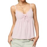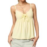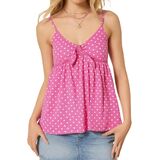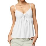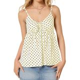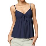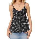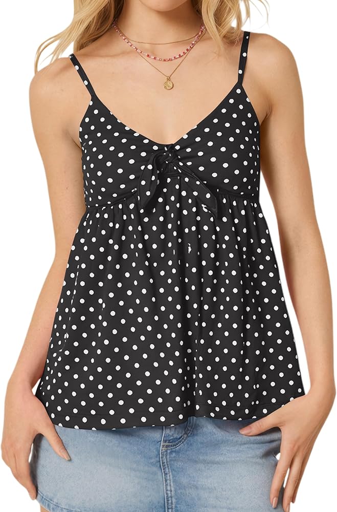 التصميم: أشرطة سباغيتي قابلة للتعديل تربط قمصان بيبي دول أمامية للنساء؛ خطوط، نقاط البولكا، قمصان كامي ذات لون خالص على شكل حرف V - جذابة لأي نوع من أنواع الجسم