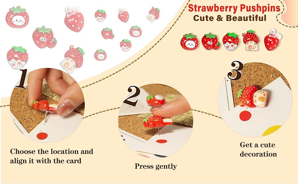 لطيفة وعملية: بالإضافة إلى الوظائف الأساسية، تعمل دبابيس الدفع ذات التصميم الفراولة على تعزيز جماليات الفضاء - حيث تمزج بين الجاذبية والفائدة من أجل عروض منظمة وجذابة.