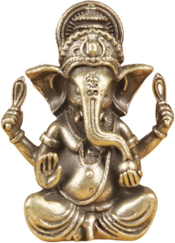 Standing at approximately 1.85 inches in height and 1.46 inches in width, and weighing around 2.26 ounces (64 grams), this miniature figurine beautifully captures the essence of Lord Ganesha, the remover of obstacles. The intricate detailing, from the ornate headdress to the symbolic gestures of his hands, showcases exceptional craftsmanship. Made from high - quality brass, it has a rich, lustrous finish that is sure to catch the eye. Whether displayed as a centerpiece during Diwali celebrations or as a year - round decorative piece in your meditation corner or living space, this Ganesha statue is a meaningful and aesthetically pleasing addition.
