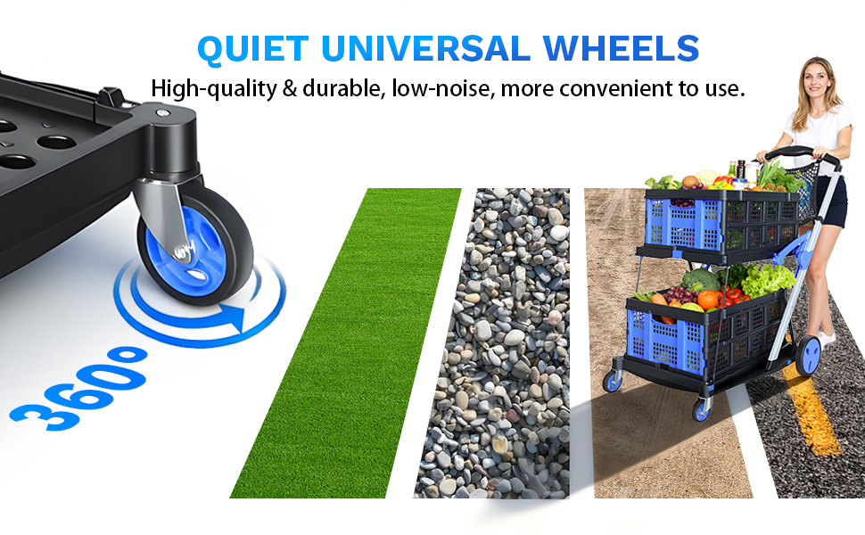 عجلات دوارة 360 درجة: مجهزة بـ 4 عجلات عالية الجودة، تدعم العجلات الخلفية الدوران الحر 360 درجة، مما يسمح لك بتغيير الاتجاهات بسهولة في المساحات الضيقة (مثل ممرات السوبر ماركت أو ممرات المكاتب). العجلات مقاومة للاهتراء ومضادة للانزلاق، وتتكيف مع الأسطح الأرضية المختلفة - سواء كانت أرضيات من البلاط الداخلي أو المروج الخارجية أو خرسانة ساحة انتظار السيارات، تتحرك العربة بسلاسة دون أن تتعثر، مما يوفر جهدك عند الدفع.