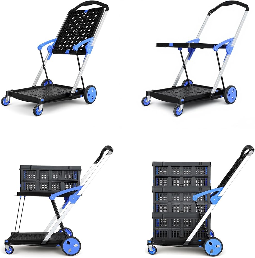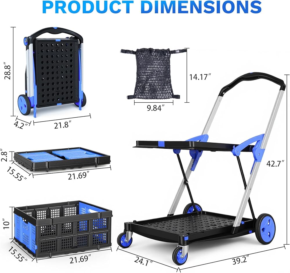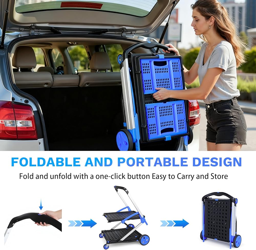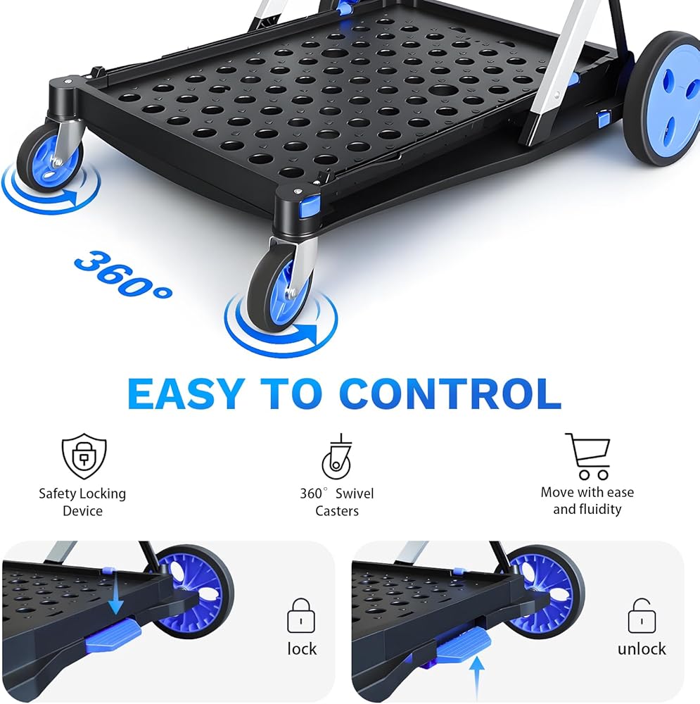 مفتاح بزر واحد: بحجم غير مطوي يلبي الاحتياجات اليومية وحجم مطوي يبلغ 28.8 × 21.8 × 4.2 فقط، يمكنك فتح العربة في ثوانٍ بالضغط على زر - لا يتطلب تجميعًا معقدًا! عند عدم الاستخدام، يمكن تخزينها بسهولة في غرف التخزين أو المستودعات أو فجوات الخزانة أو صناديق السيارة، مما يحافظ على منطقة المعيشة/العمل الخاصة بك مرتبة دون شغل مساحة إضافية، مناسب بشكل خاص للشقق الصغيرة أو المستأجرين.