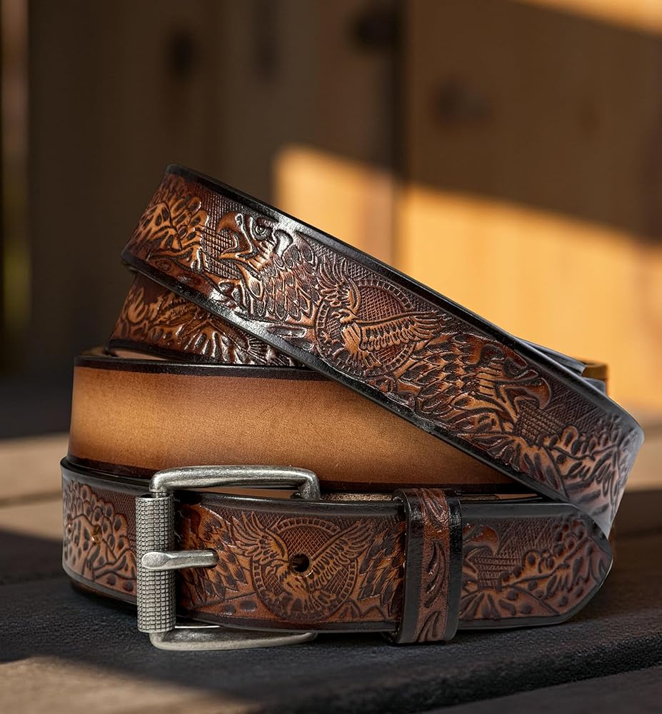 • --- 1.5-inch width, this men's cowboy belt combines a sleek, western appeal with all-day comfort. Its convenient snap system allows for easy buckle changes, ensuring a perfect fit."