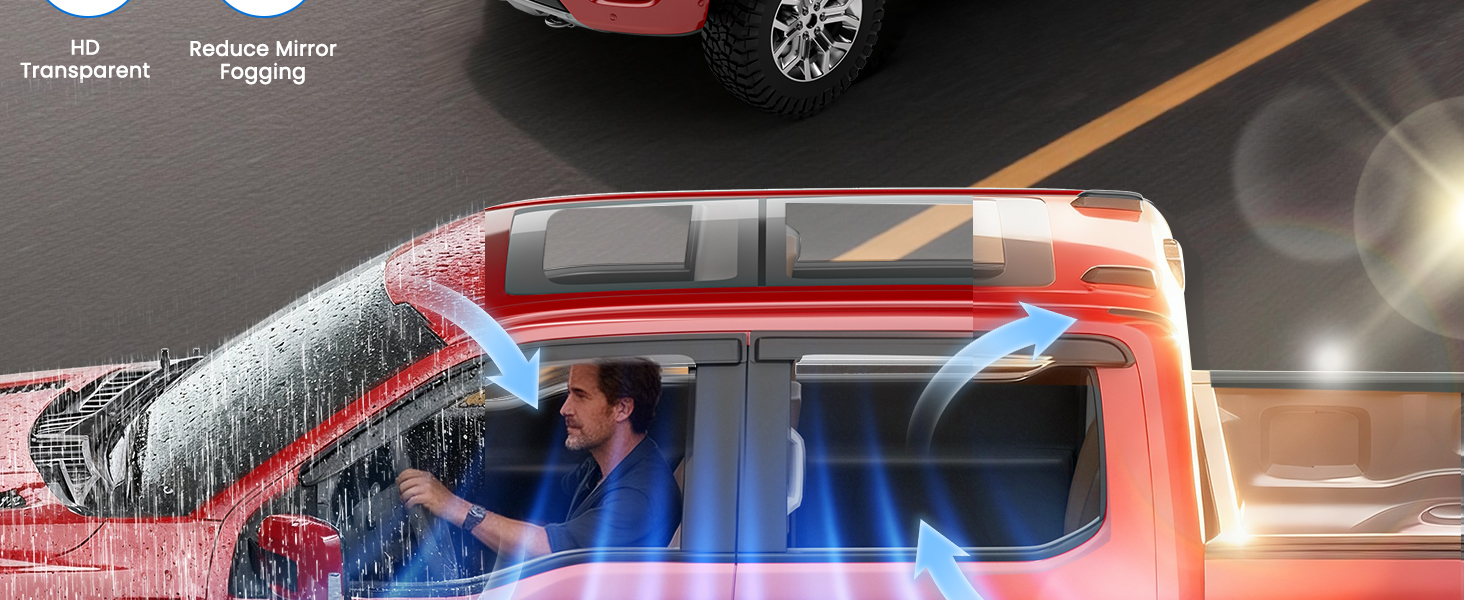 وظيفية👍 - قم بتظليل الكابينة من أشعة الشمس لتقليل الحرارة الداخلية عند ركن السيارة تحت أشعة الشمس، ومنع تكون الضباب على المرايا. تقليل ضوضاء الرياح الداخلية وتقليل الوهج أثناء القيادة الليلية. استمتع بالهواء النقي الخارجي مع نافذة مفتوحة قليلاً في أي طقس.