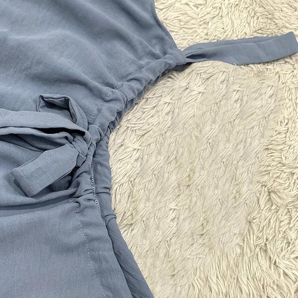 • المزايا: لون سادة، بدون أكمام، ساق واسعة. مقاس يصل إلى 2XL.