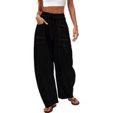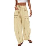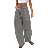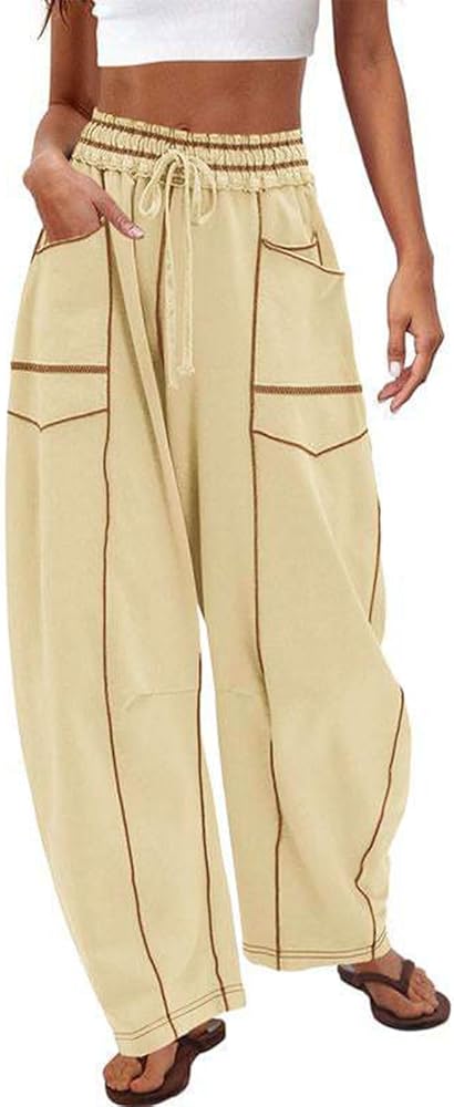 تصميم مستوحى من الطراز القديم: تعرض هذه السراويل الرياضية النسائية تفاصيل عتيقة مع خياطة علوية متباينة تبرز الصورة الظلية للبرميل. يجمع حزام الخصر المرن مع رباط قابل للتعديل بين السحر القديم والراحة العصرية.
