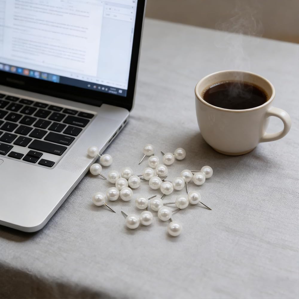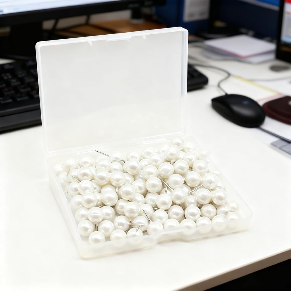 • 100 Pearl White Push Pins – Beautiful and practical, perfect for daily use at home, school, or office. The vibrant round heads add a touch of elegance to any workspace.