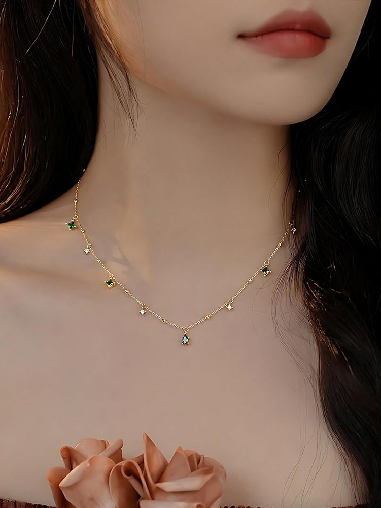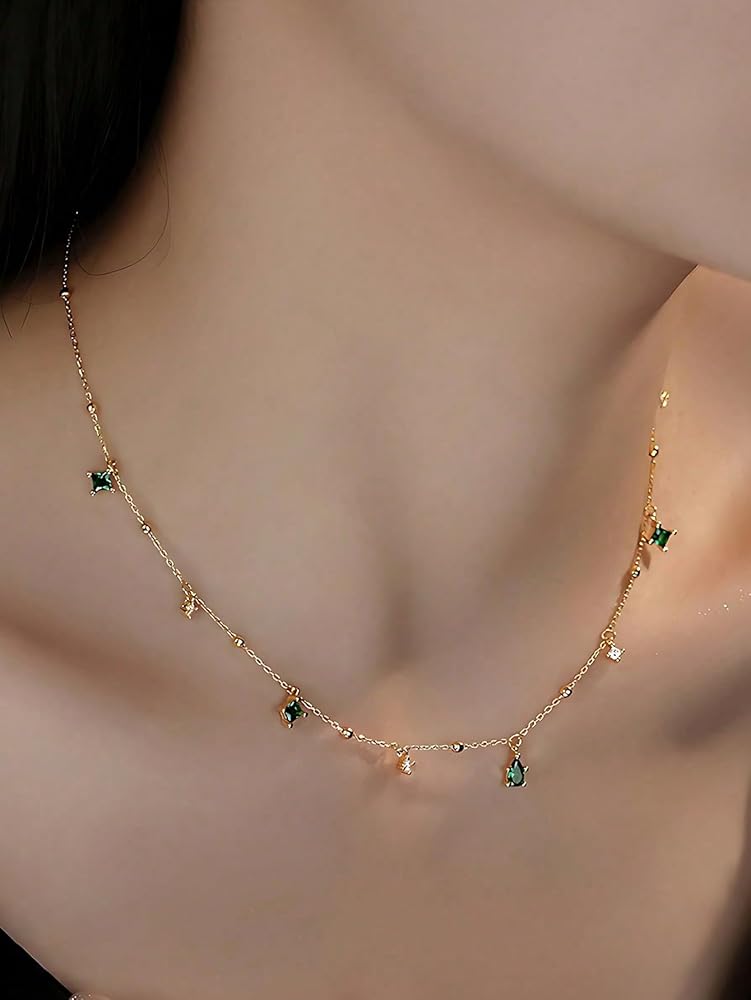ELEGANT DESIGN: Features alternating green zirconia stones and small square accents along a dainty chain for a sophisticated look