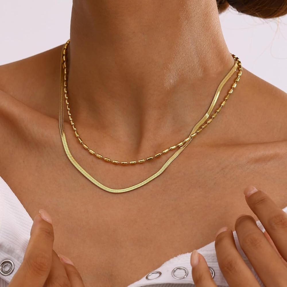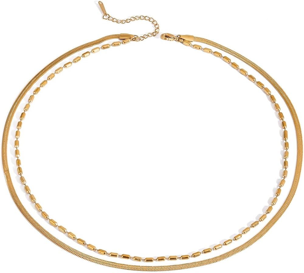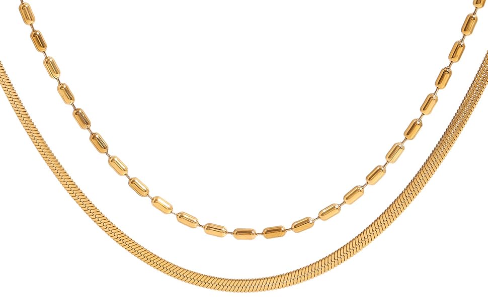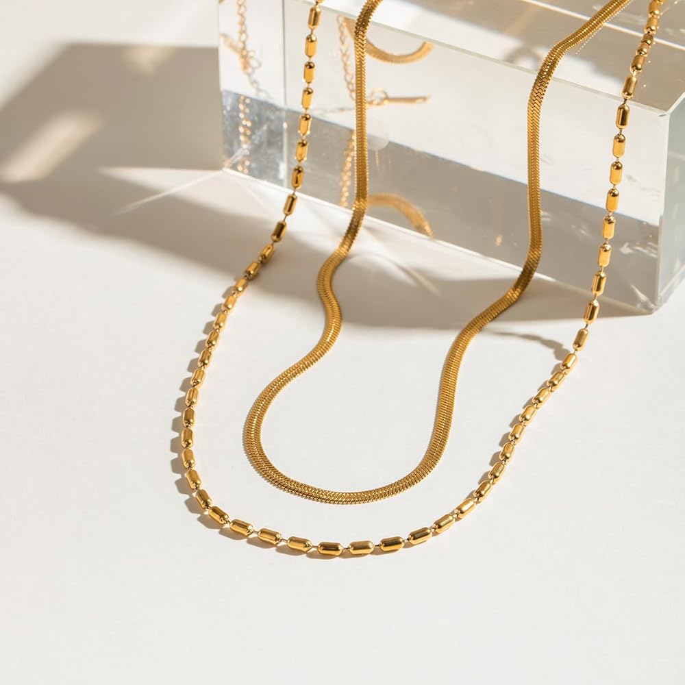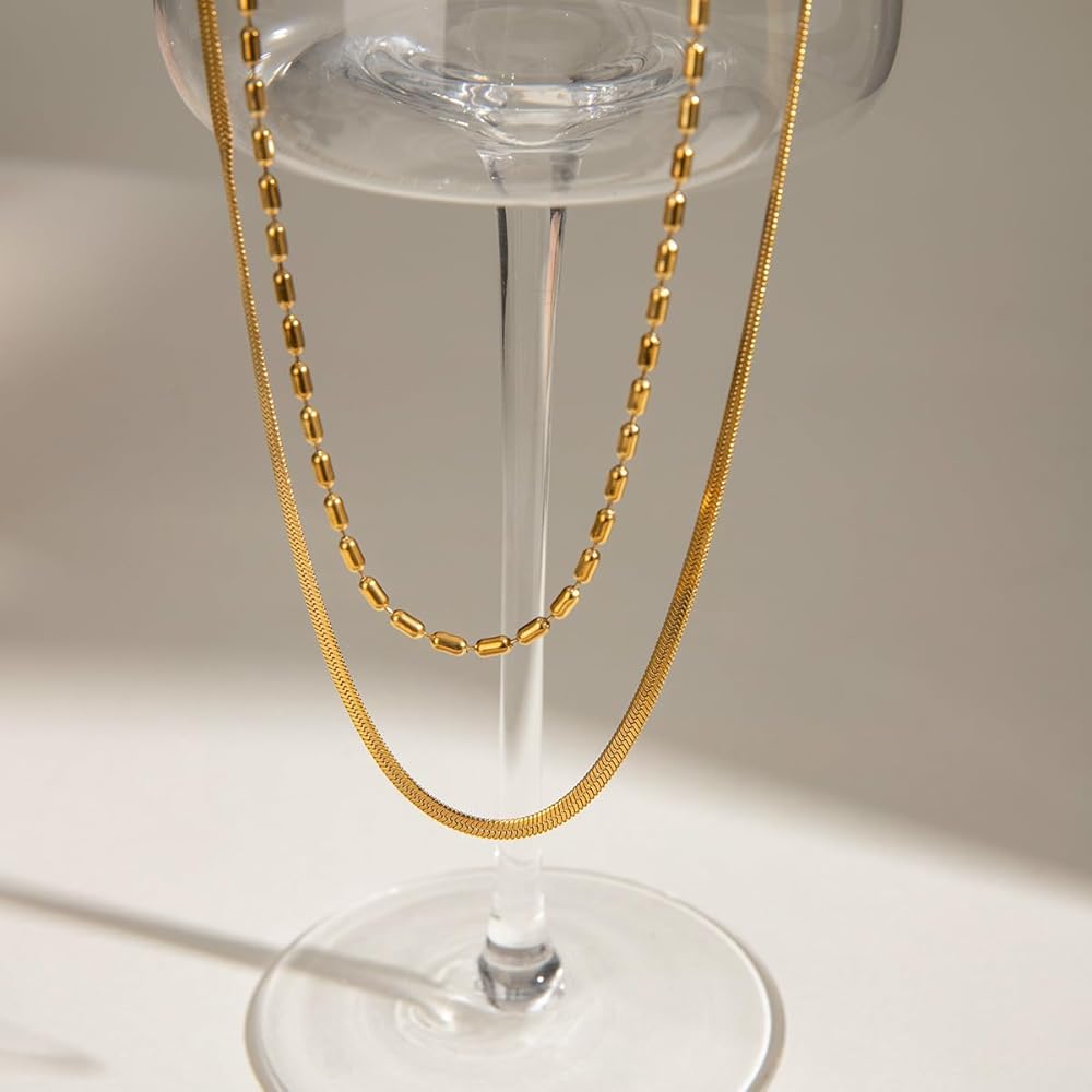 قلادة سلسلة مزدوجة الطبقات مطلية بالذهب عيار 18 قيراط من مادة PVD، مصنوعة من الفولاذ المقاوم للصدأ غير مشوه ومطرزة بتصميم سلسلة ثعبان، قلادات مزدوجة الطبقات للنساء، هدايا مجوهرات عصرية لذكرى عيد الميلاد