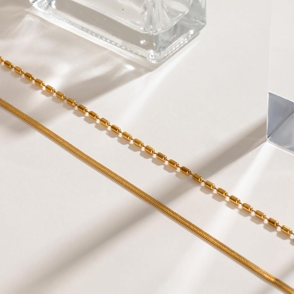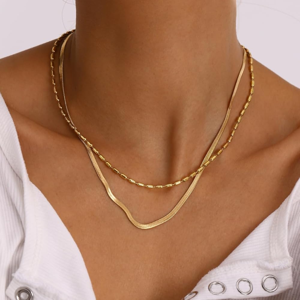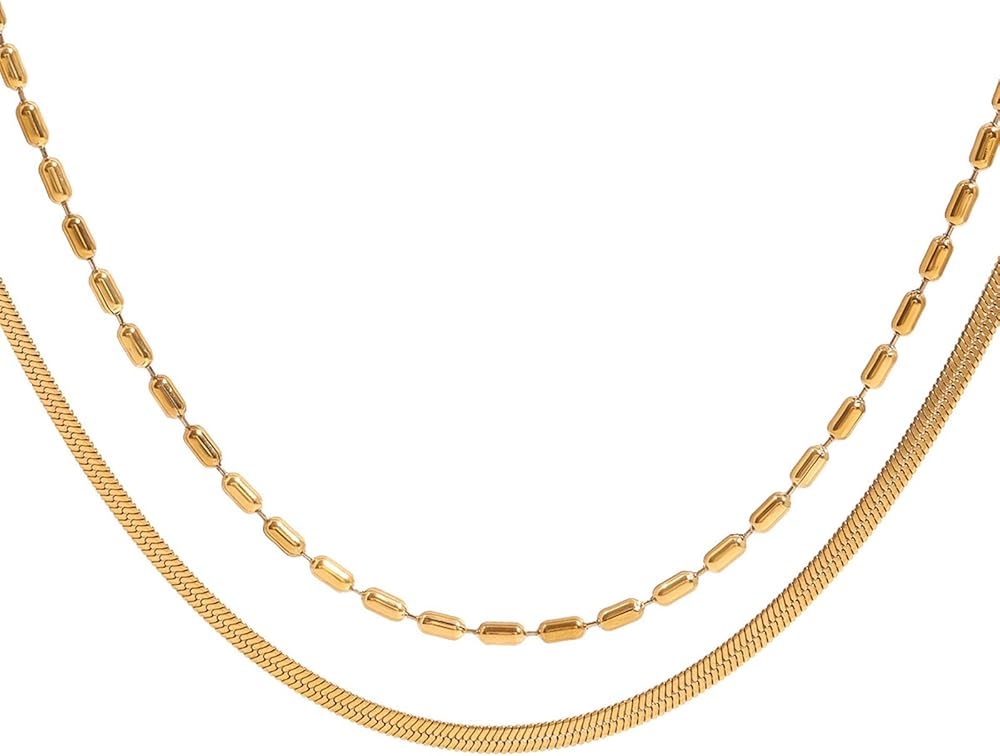 تصميم مزدوج الطبقات: يتميز بسلسلتين مميزتين - سلسلة مطرزة مقترنة بسلسلة ثعبان أنيقة لمظهر عصري متعدد الطبقات