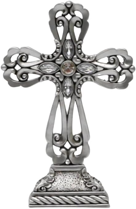 الصليب الدائم | صليب طاولة مزخرف لمذبح المنزل | حامل متقاطع للمكتب | تمثال صليب للجرف | الصليب الواقف | صليب ديني مقاس وسط 7 بوصة فضي