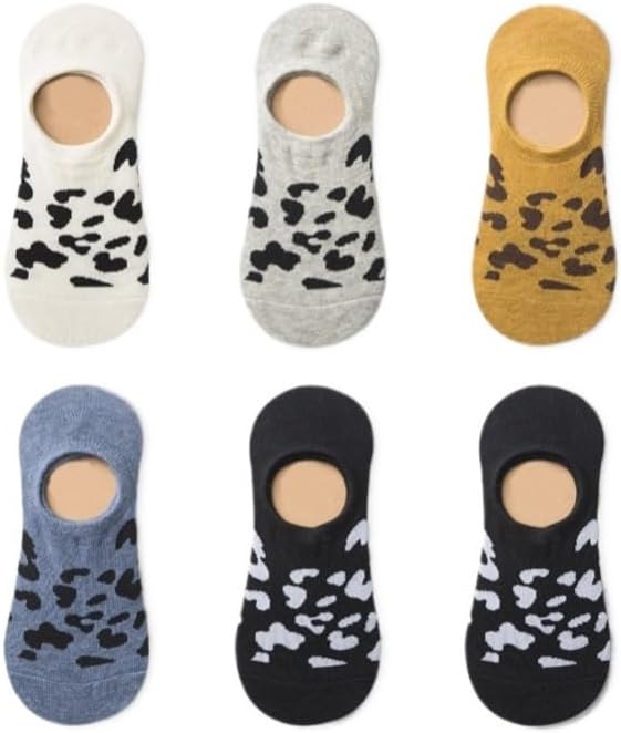 These fashion-forward leopard print socks combine trendy style with practical comfort. Made from soft cotton with non-slip silicone grips, they stay hidden in shoes while keeping your feet fresh and secure.