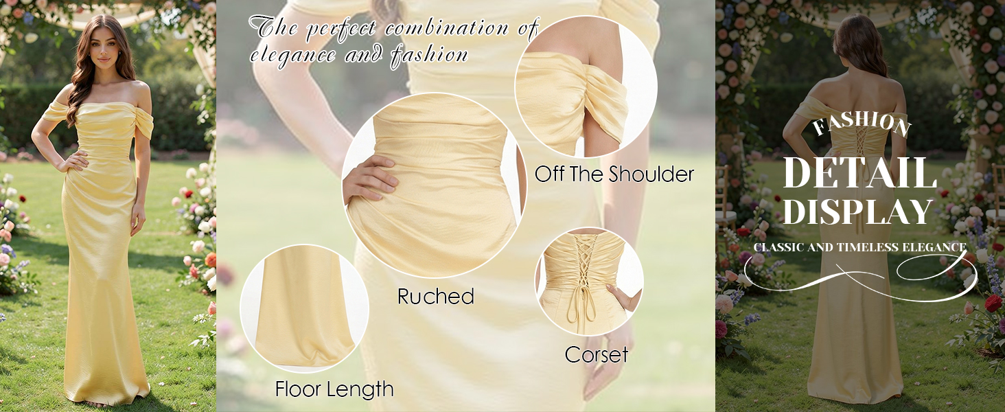 الميزات: فساتين حفلات بدون أكتاف للنساء، فساتين حفلة موسيقية من الساتان للمراهقين 2026، فستان طويل للحفلات المسائية الرسمية، فستان طويل طويل، فساتين وصيفات العروس حورية البحر، فستان ضيوف الزفاف، حمالة صدر مدمجة، مطوي، ضيق، Bodycon