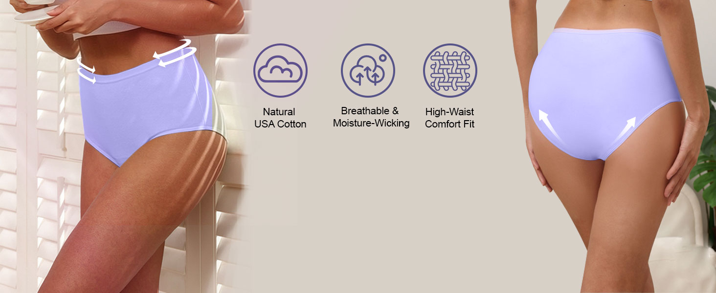 نسيج قطني أمريكي ناعم: ملابس داخلية قطنية مسامية للنساء مصنوعة من القطن الأمريكي لراحة طوال اليوم. معتمد من OEKO-TEX، خالي من الفلورايد، مما يجعله آمنًا للبشرة الحساسة والبيئة، مثالي للارتداء اليومي.