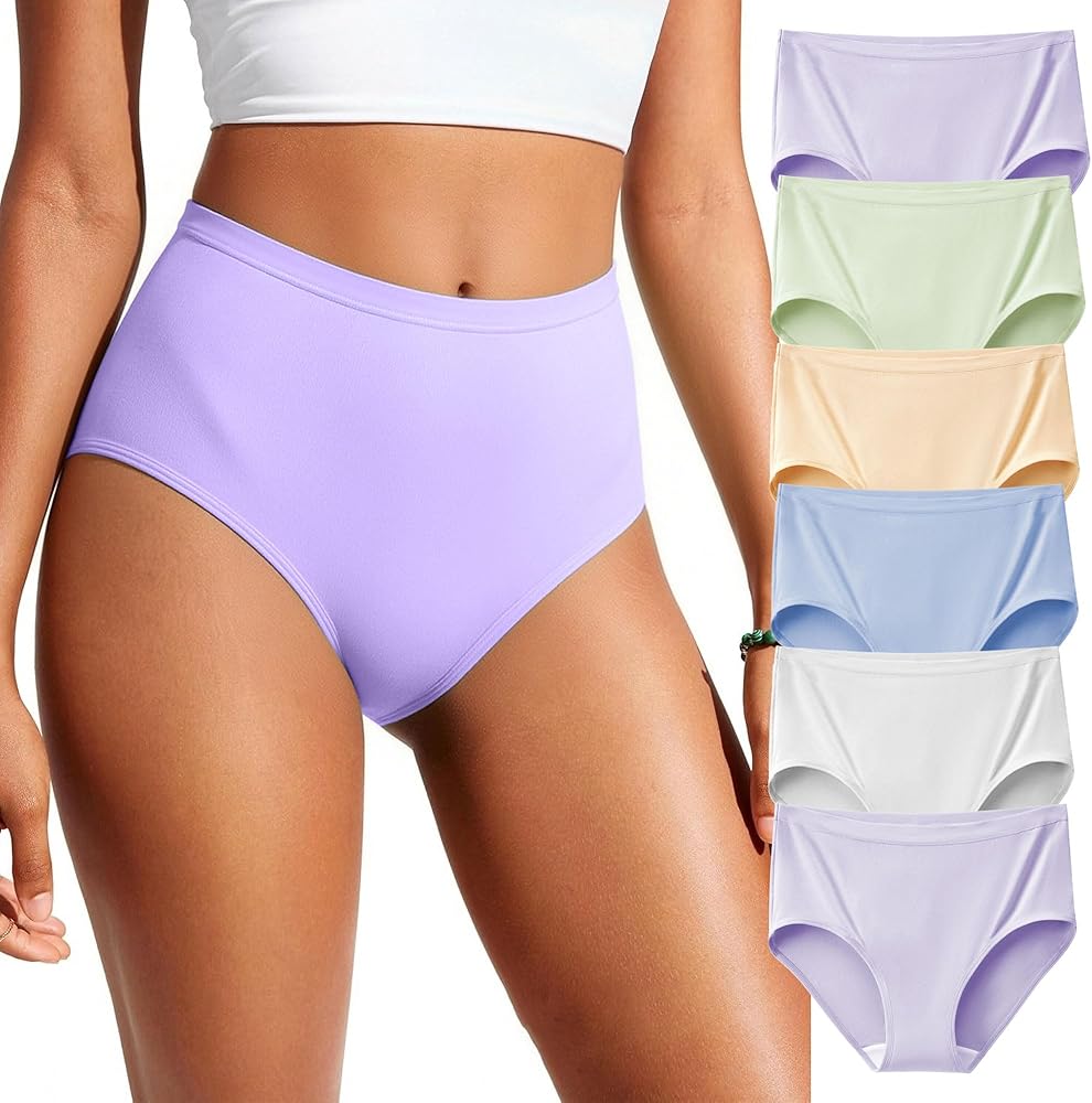 ملابس داخلية نسائية عالية الخصر: توفر السراويل الداخلية عالية الخصر للسيدات ملاءمة سلسة ودعمًا لمحيط خصرك، مما يوفر الراحة دون قيود، مما يجعلها رائعة للارتداء في الصالة أو التدريبات