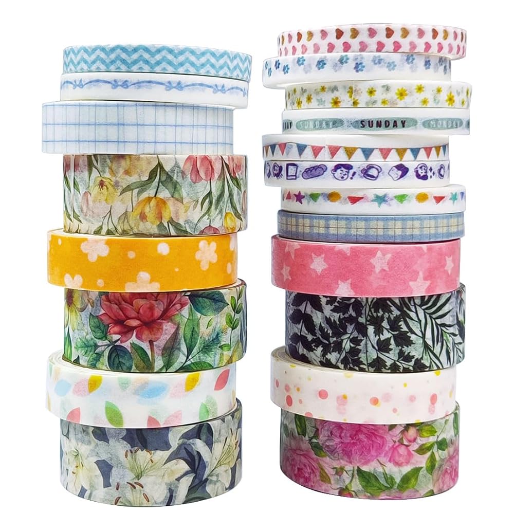 This comprehensive washi tape set brings creative versatility to your crafting projects with 20 rolls of beautifully designed floral patterns in assorted sizes. Perfect for adding decorative touches to journals, planners, and bullet journals, these adhesive tapes offer endless possibilities for personalization. The floral designs add an elegant, artistic flair to any project, whether you're embellishing diary pages, creating unique scrapbook layouts, or adding special touches to gift wrapping. These tapes work wonderfully for decorating Bibles, enhancing photo albums, personalizing calendars and greeting cards, designing visual panels, or even transforming everyday items like vases into decorative pieces. The variety of sizes in this set allows you to mix and match patterns for layered effects and creative combinations. Easy to tear by hand and reposition without leaving residue, washi tape is ideal for both permanent and temporary decorating needs. The assorted roll collection ensures you'll have the perfect pattern and width for any creative endeavor, from detailed journaling embellishments to bold statement pieces in your craft projects.
