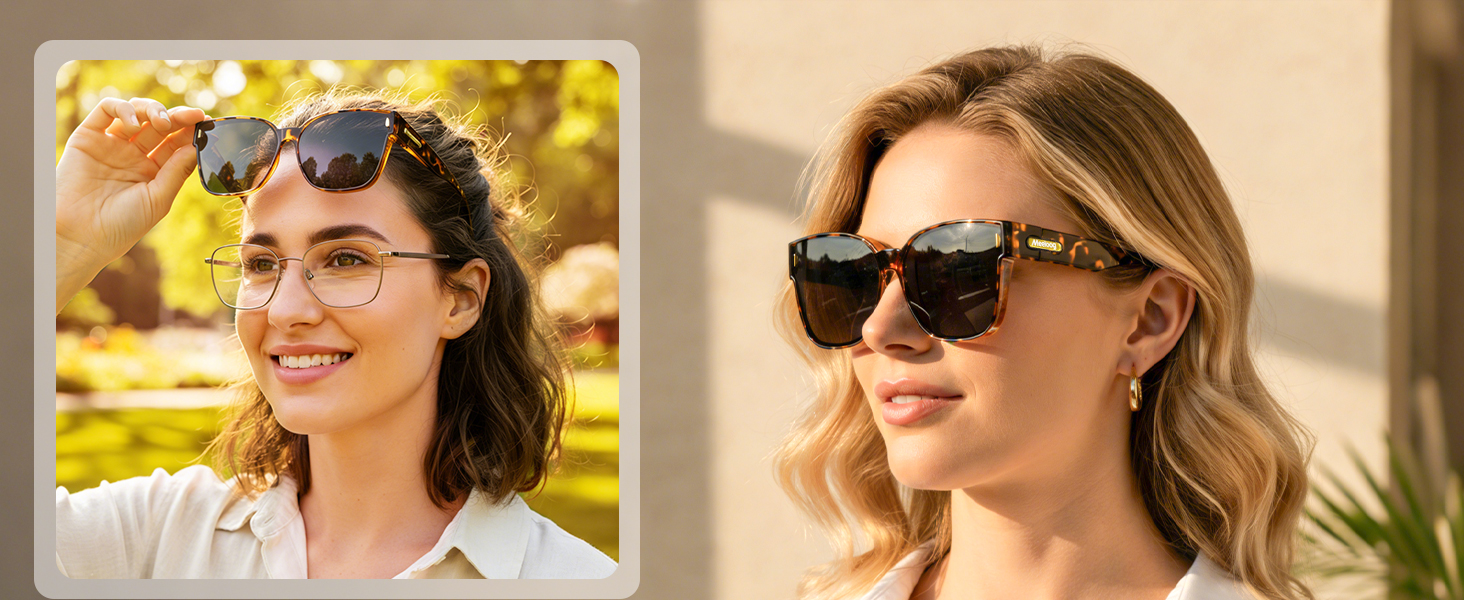 تناسب النظارات الشمسية: مصممة لتناسب نظارات الوصفات الطبية أو نظارات القراءة بسلاسة، وتتميز هذه النظارات الشمسية بأخدود يناسب معظم الإطارات. استمتع براحة ارتداء النظارات والنظارات الشمسية في وقت واحد دون أي تنازلات
