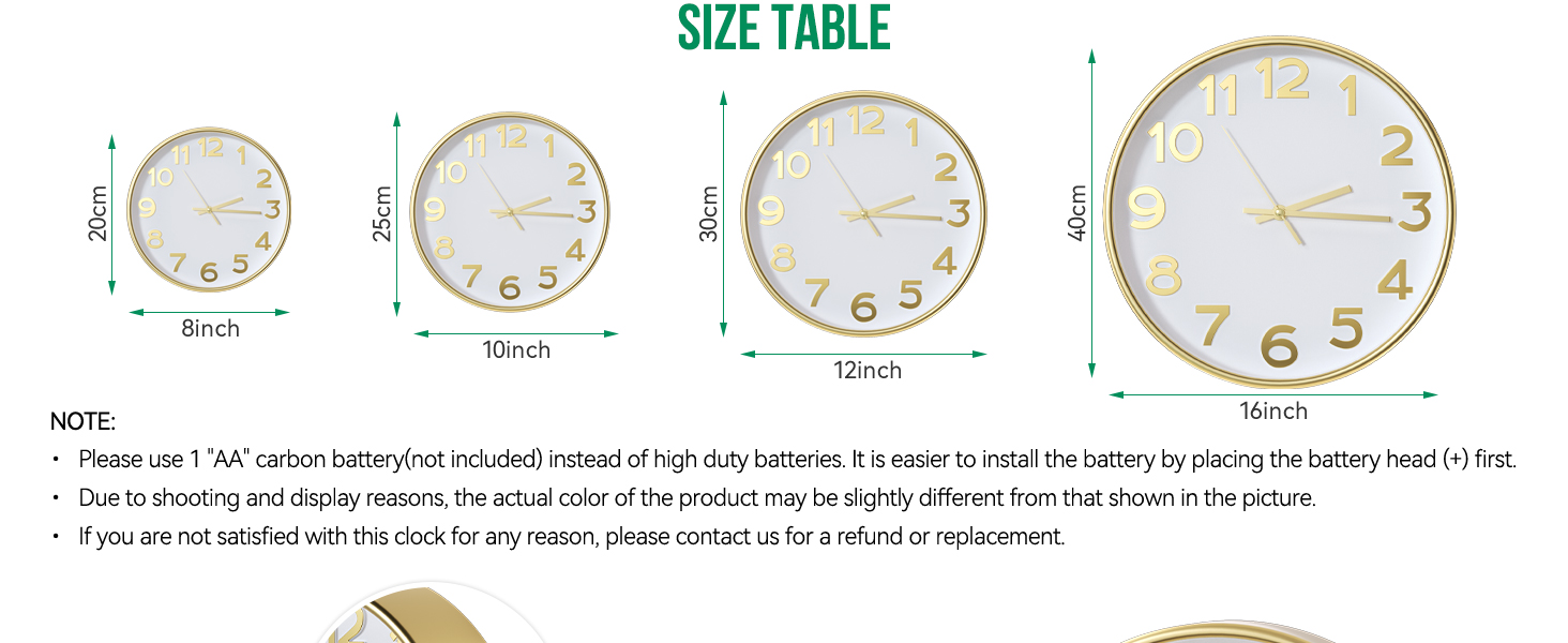 من السهل استبدال البطاريات: ساعة الحائط BAKBRAND تعمل ببطارية كربون زنك AA واحدة (بطارية جافة من الزنك والمنغنيز، غير متضمنة في المنتج) ويمكن استبدالها بنفسك، ولكن تجنب استخدام بطارية قابلة لإعادة الشحن، بطاريات عالية الأداء وما إلى ذلك.