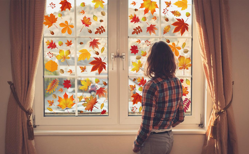• ديكورات نافذة الخريف الرائعة: تستخدم ملصقات النوافذ المصنوعة من خشب القيقب تصميمًا على الوجهين، لذلك يمكنك رؤية ملصقات النوافذ المتنوعة لأوراق الخريف في الداخل والخارج. إنها ليست مثالية فقط لتزيين نوافذ الخريف ولكنها أيضًا ملصقات رائعة لنافذة عيد الشكر.
