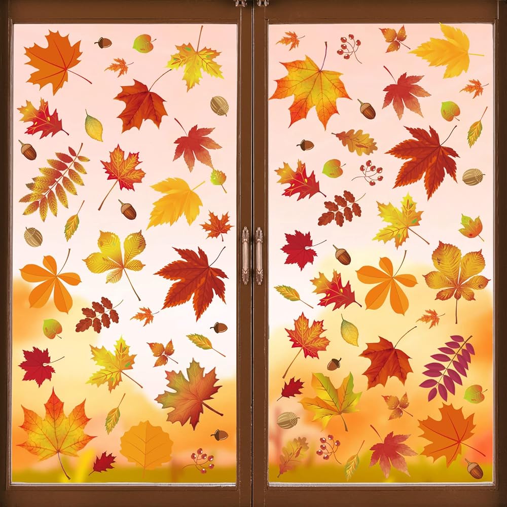 216 قطعة من ملصقات نافذة الخريف لتزيين النوافذ في الخريف والخريف وعيد الشكر وديكورات النوافذ الزجاجية