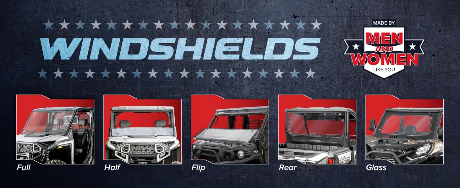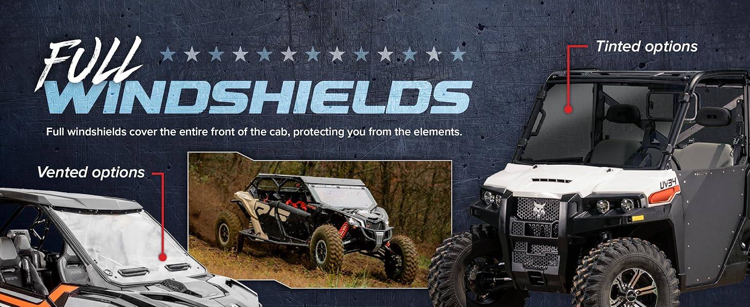 SuperATV نصف زجاج أمامي مقاوم للخدش لـ Maverick R، طلاء صلب بصري XR، 1/4 بوصة بولي كربونات أقوى 250 مرة من الزجاج، حماية فائقة ونمط أنيق، صناعة أمريكية، بدون صبغة