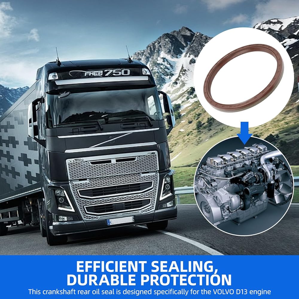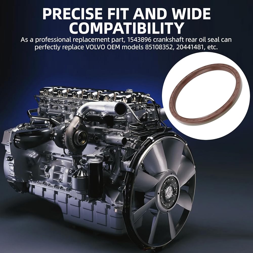 [Accurate replacement,] This heavy-duty seal kit is engineered as a direct replacement for OEM numbers 1543896, 20441481, and 85108352. It serves a dual purpose, functioning as both the crankshaft rear main seal and the transmission input shaft seal for Volvo D13 and Mack MP8 engines, ensuring a perfect fit and eliminating application guesswork.