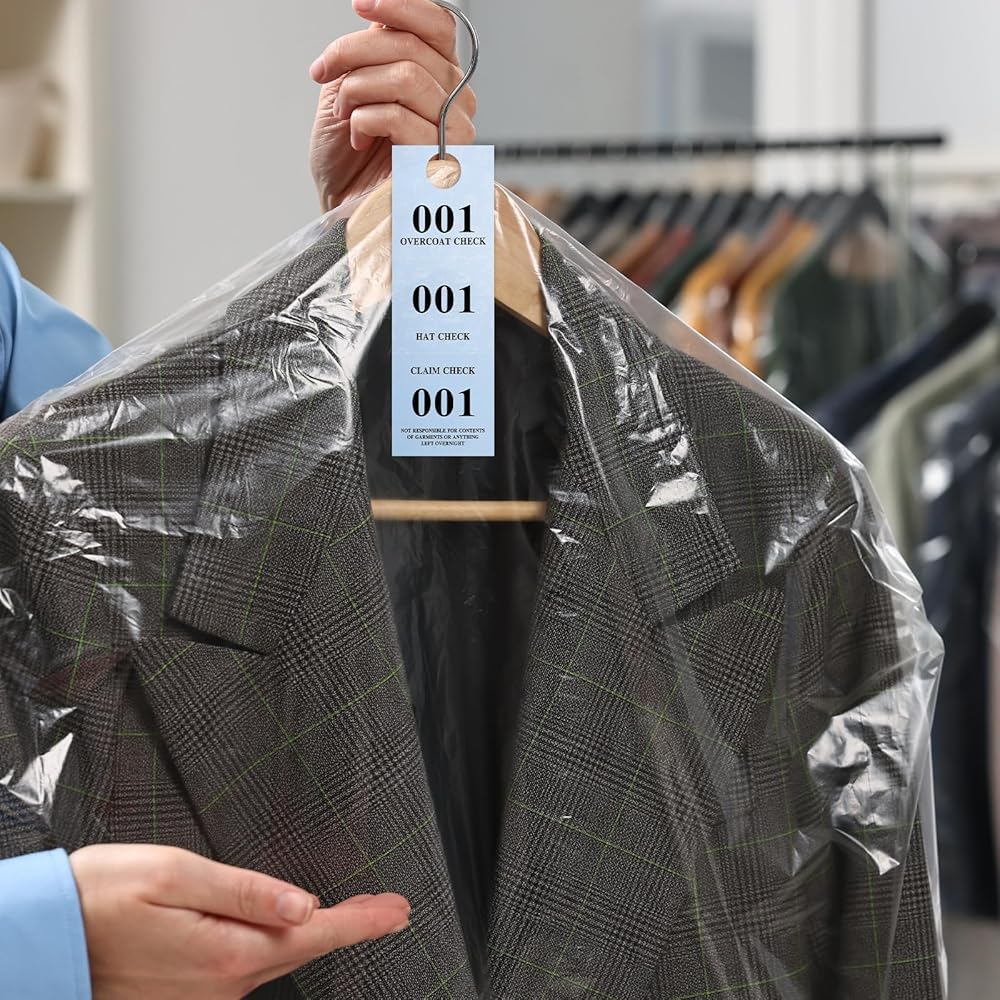 Nice for a variety of settings, our overcoat check tickets can be applied in clothing stores, laundromats, dealers, event organizers and raffles, making them a must-have for any occasion.